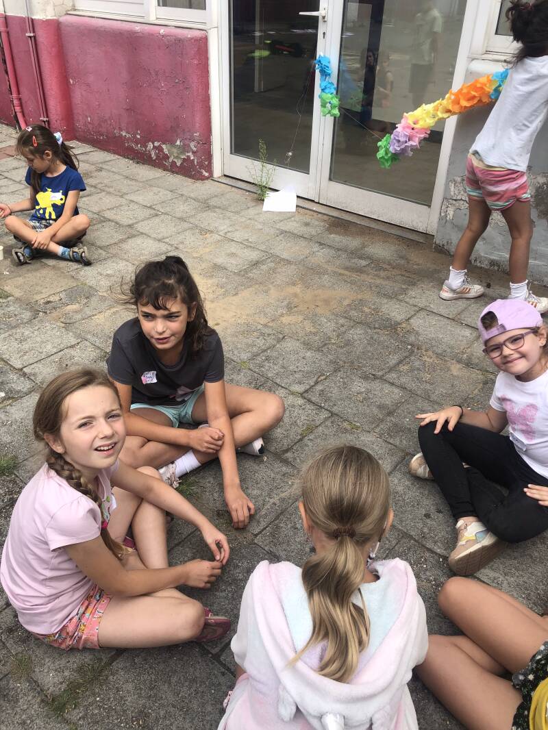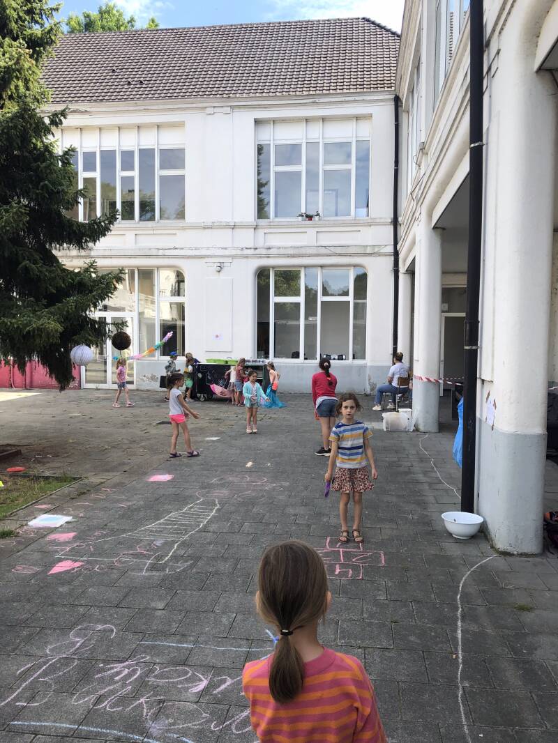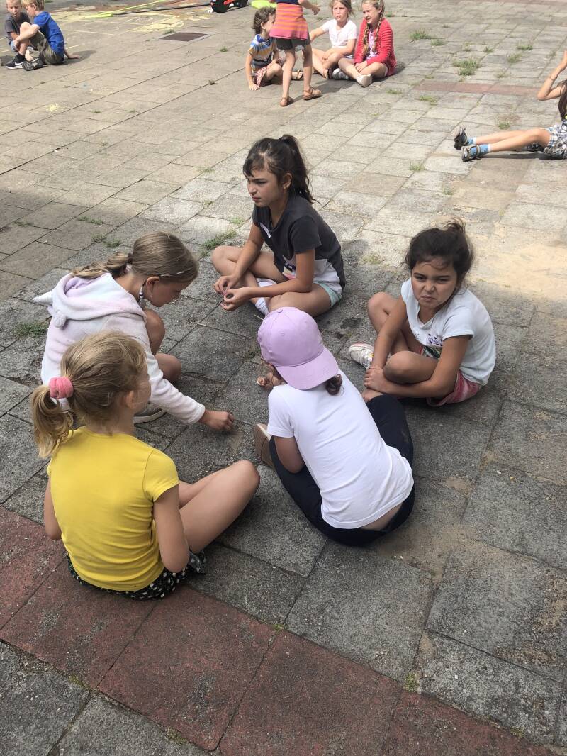 Voor onze laatste kristal van de tijdskern te verdienen zijn we beland bij de hippies! T/shirts tie dyen, hippiebusjes maken, parelkettingen… Alles om ons om te toveren tot echte hippies! We hebben op het springkasteel gespeeld, een lekker ijsje gegeten en samen ons museum klaargezet!
